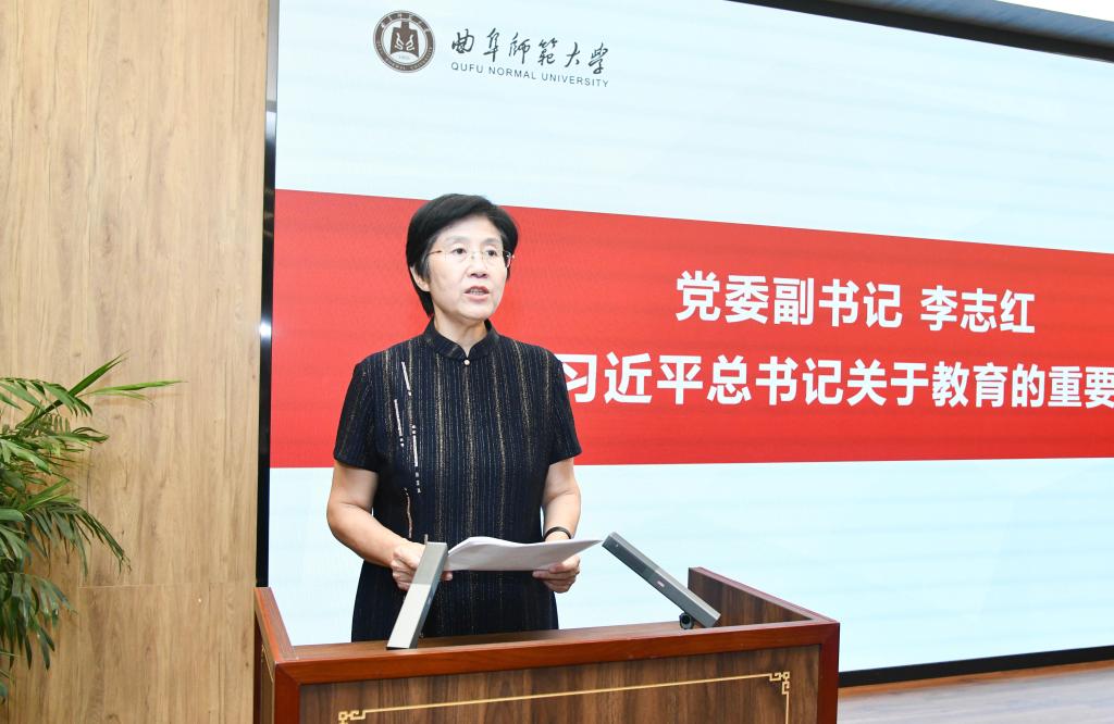 学校党委副书记李志红在开班仪式上领学了习近平总书记关于教育的重要论述,希望新入职教师树立“躬耕教坛、强国有我”的志向和抱负,深刻把握教育家精神时代内涵,以教师之强支撑高水平孔子家乡大学建设行稳致远。