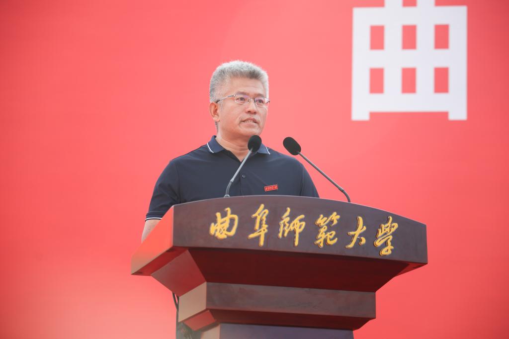 “曲园,这所新时代的孔子家乡大学,将成为你们梦想起航的港湾,为你们逐梦未来、勇毅向前提供最优质的资源和最坚实的后盾。” 张洪海代表全校师生员工对2024级新同学的到来表示最热烈的欢迎,介绍了学校的奋进历程、办学成绩,用“愿得此身长报国”“好书不厌百回读”“咬定青山不放松”寄语新同学,为全体新生讲授了一堂生动别样的“开学第一课”。