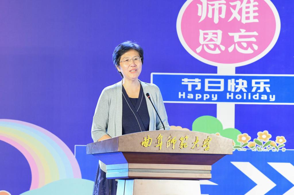 李志红在活动上致辞,向默默耕耘、辛勤工作在教学、科研、管理和服务岗位上的全体教职员工,致以节日的祝福和亲切的问候。李志红说,曲园师生在教育强国新征程中,展现出了胸怀天下、至诚报国的使命担当,奋发向上、追求卓越的进取精神,敢于吃苦、甘于奉献的高尚情怀;希望全体教师和师范生坚守“为党育人、为国育才”的理想追求,树牢“躬耕教坛,强国有我”的志向和抱负,为建设教育强国贡献曲师智慧和力量。