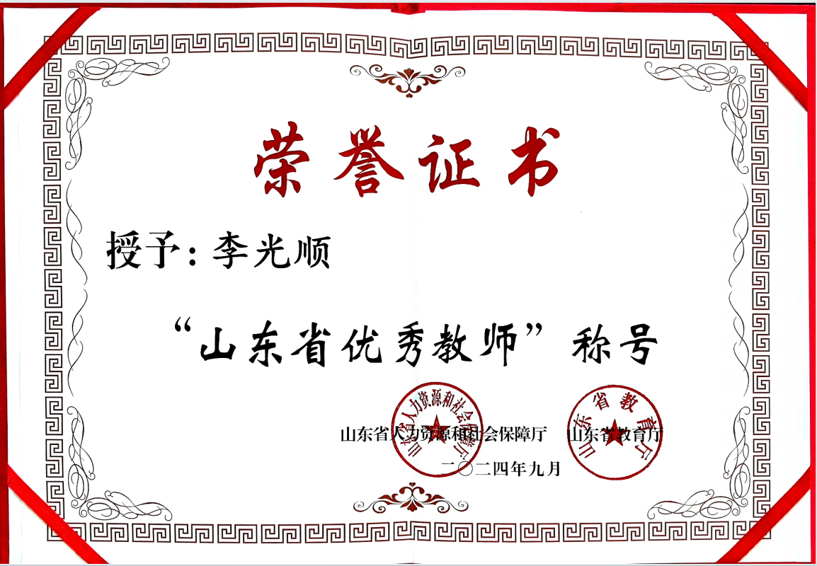 李光顺表示:荣誉既是认可更是动力,自己将进一步砥砺为党育人、为国育才的初心使命,积极弘扬践行教育家精神,聚力人才培养、坚持教研相长,在学科建设、教育教学、科学研究等工作中发挥好应有的榜样作用,拿出更多的教学与科研成果,为服务教育强国和教育强省建设作出自己的贡献。