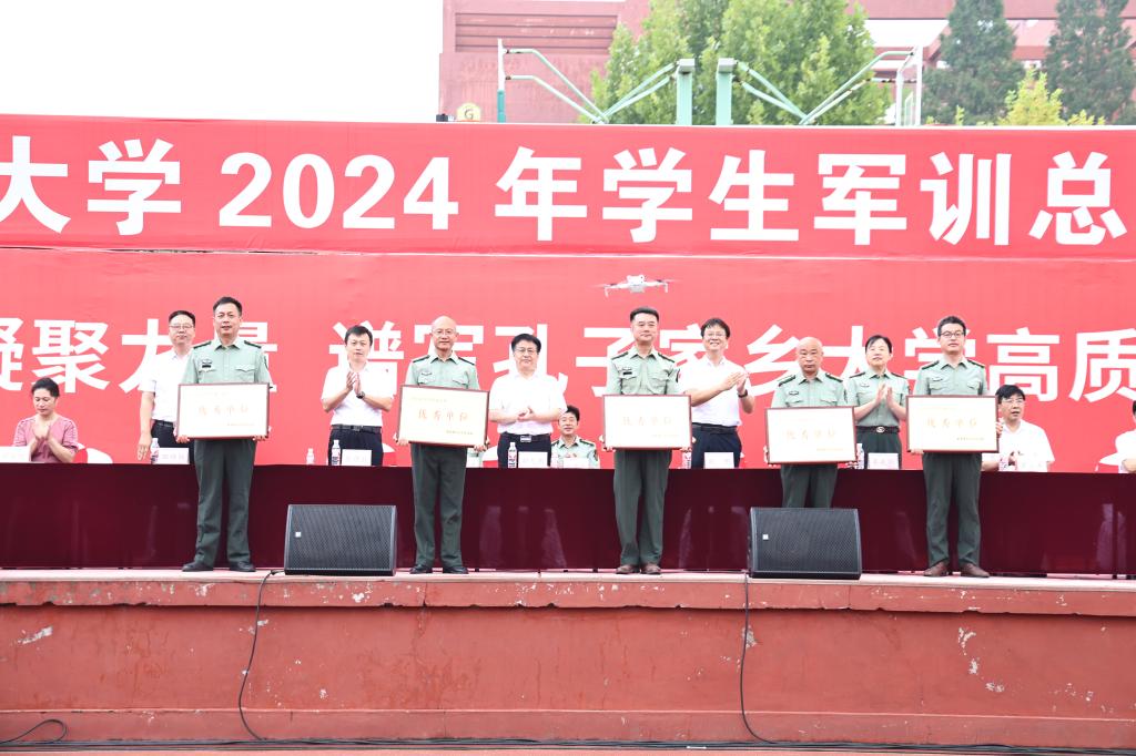 刘刚、陈刚宣读了2024年军训优秀标兵、优秀教官、优秀连队、演讲比赛获奖单位、拔河比赛获奖单位、歌咏比赛获奖单位、内务卫生先进单位、优秀指导员和军训工作优秀单位名单。在主席台就坐的领导为获表彰的集体和个人颁发了证书和奖牌。