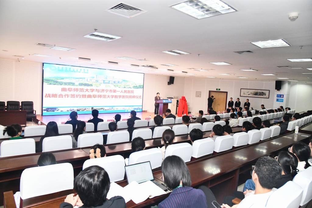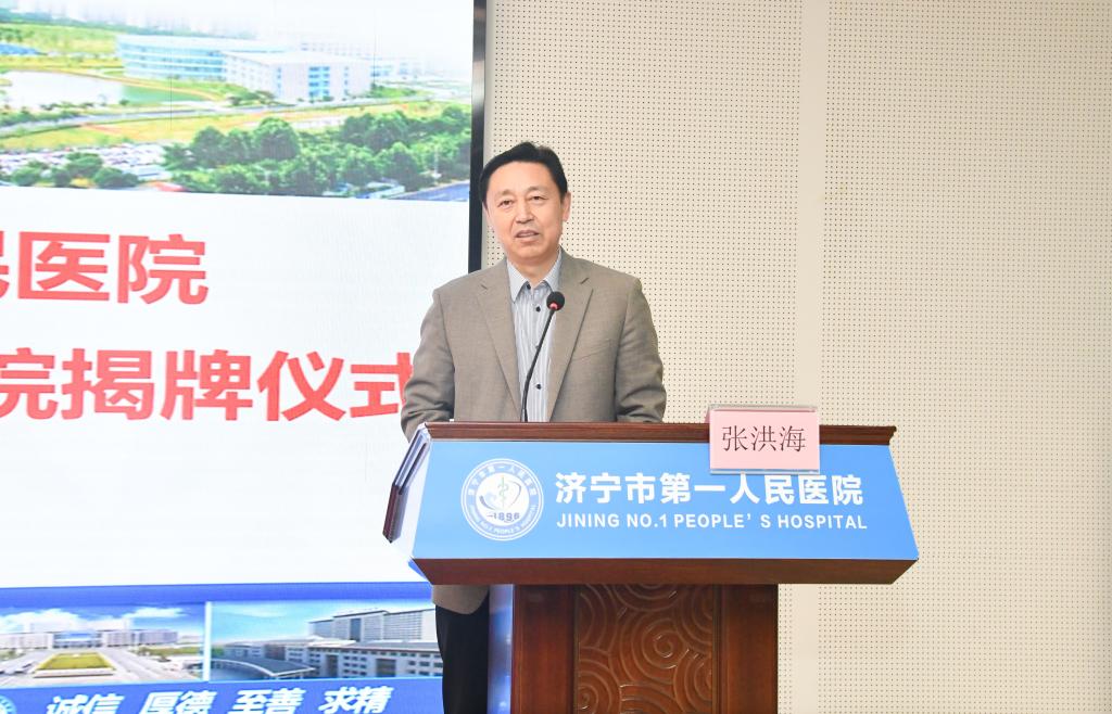 张洪海在致辞中介绍了学校事业发展情况。他表示,济宁市第一人民医院拥有众多国家、省级重点专科和科研平台,在医疗、科研、教学、预防保健等方面处于省内领先地位,多年来在师生医疗服务等方面给予学校诸多支持,为校院双方建立合作关系打下了良好基础。一直以来,曲阜师大从国家和地方急迫需要和长远需求出发,狠抓基础研究、应用研究和成果转化,自觉履行高水平科技自立自强的使命担当。此次合作协议签署不仅确定了双方的教学医院关系,也将校院双方友好合作关系提升到新的高度,合作范围更加全面,重点更加突出。希望通过签约建立长效沟通机制,落实协议内容,早日结出丰硕成果;同时在人才培养、资源共享、协作攻关、对外交流等方面,深化拓展合作空间,携手为深化产学研融合、促进高校人才培育和服务医疗卫生事业发展,做出新的更大贡献。