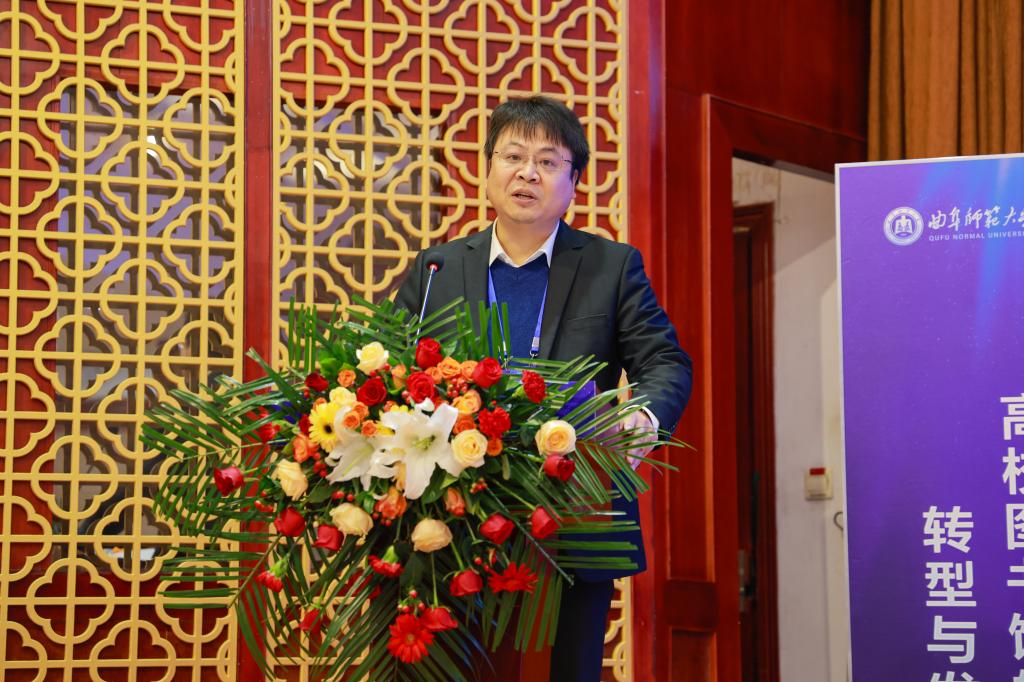 刘刚对与会代表表示热烈的欢迎,并简要介绍了曲阜师大的办学历史、办学成绩和办学特色。他强调,D体育在线登录官网一直高度重视图书馆建设,不断改善办馆条件,希望通过此次交流研讨,不断创新服务理念,深刻把握新定位、新使命,确立新目标、新任务,为高校图书馆服务国家战略、提升学校人才培养质量、提高学科建设水平做出积极贡献。