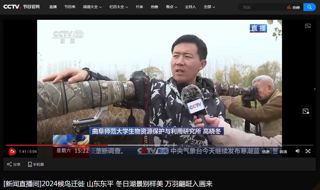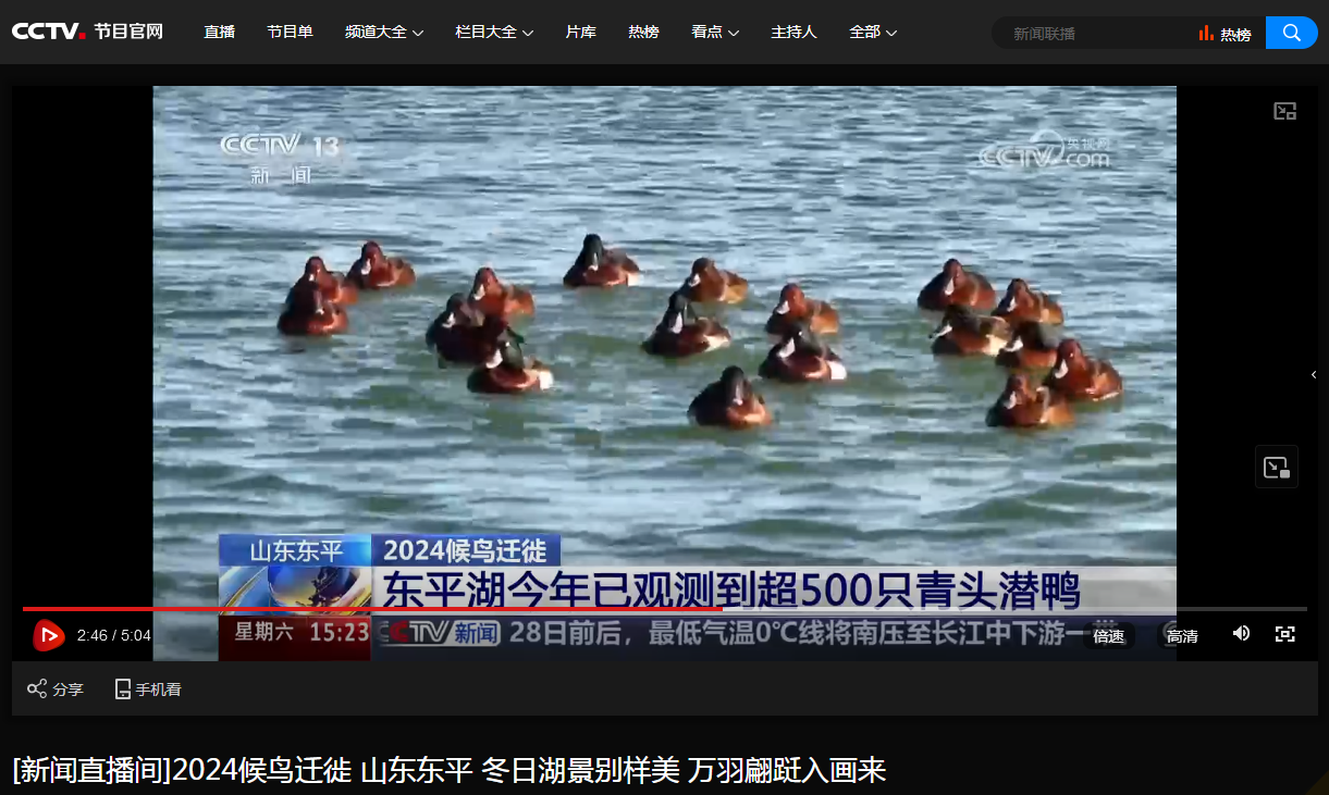 党委宣传部、生命科学学院讯 日前,中央电视台《新闻直播间》推出的2024候鸟迁徙系列报道,专门介绍了青头潜鸭在山东东平湖的栖息情况,采访了D体育在线登录官网张洪海教授领衔的研究团队,显示了学校发挥学科与人才优势推动黄河流域生物多样性研究和湿地生态保护的生动实践。