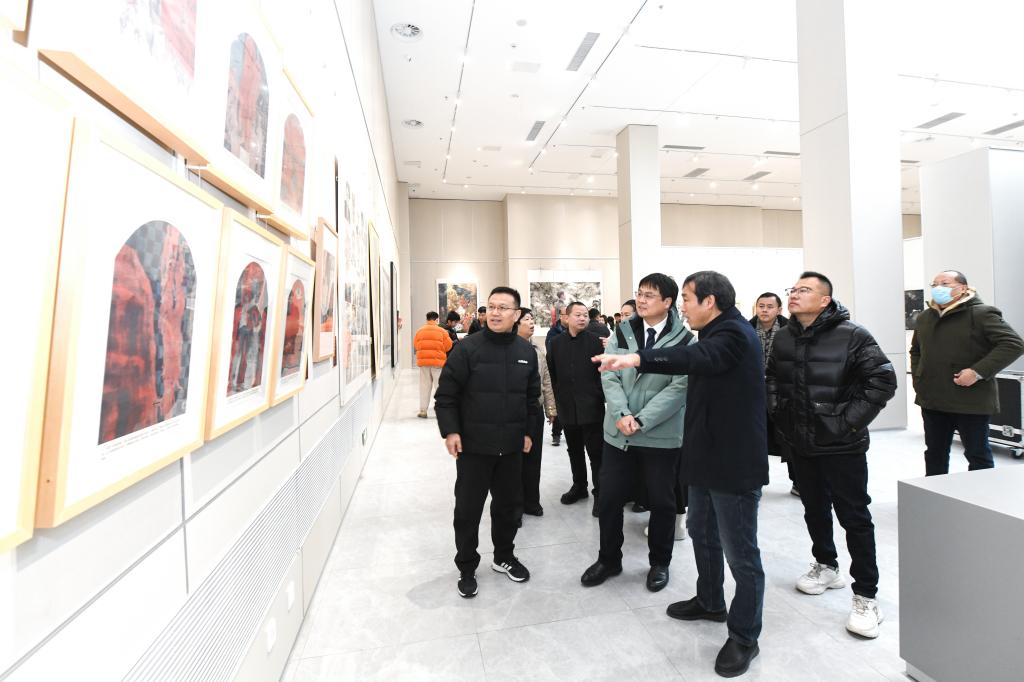 刘刚向莅临展览的各位领导和嘉宾表示欢迎,向大家长期以来给予学校的关心和支持表示感谢。并表示,本次展览以多样的艺术语言和真挚的情感表达,展现了新中国七十五载红色历史的峥嵘岁月,描绘了新时代的辉煌画卷。学校高度重视美术与书法学科的建设与人才培养,希望以此次展览为契机,以艺术为桥梁,讲好中国故事,传播中国声音,努力为国家的文化事业贡献智慧与力量。
