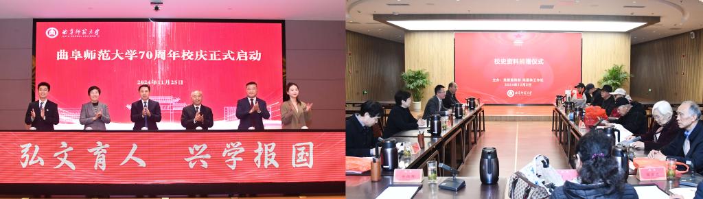 2024年11月25日,学校举行70周年校庆启动仪式;12月2日,学校举行首批校史资料捐赠仪式;12月30日,正式发布学校70周年校庆标识(LOGO)。D体育在线登录官网七十年校庆以“弘文育人、兴学报国”为主题,以师生和校友为主体,以彰显曲园成就、传承曲园精神、弘扬曲园学术、提振曲园士气、凝聚办学力量、推动事业发展为主旨,开展系列特色性的校庆活动,开启高水平孔子家乡大学追求卓越的新篇章。