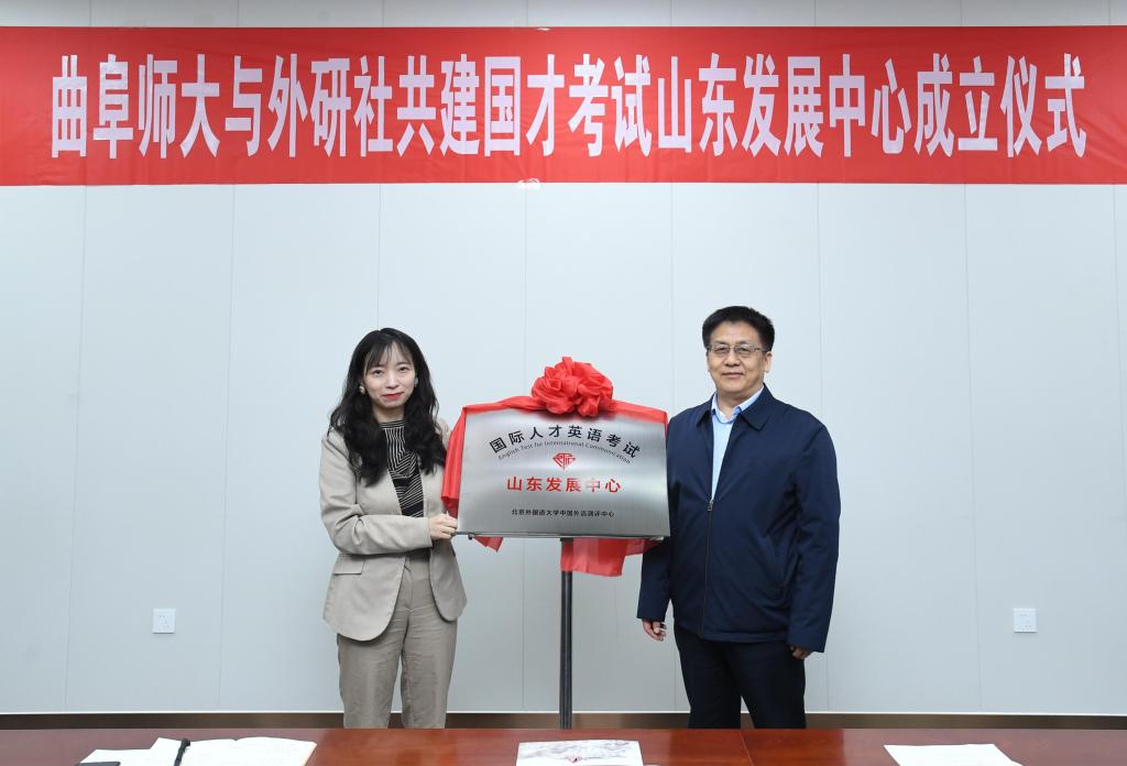 仪式上,胡凡刚与冯涛共同为“国际人才英语考试山东发展中心”揭牌,曲阜师大教务处处长李傅山与外研社高等营销中心华东大区总经理李洪旺为“D体育在线登录官网国际人才培养基地”揭牌。两大平台的成立,将为山东省高校国际化人才培养提供重要支撑。