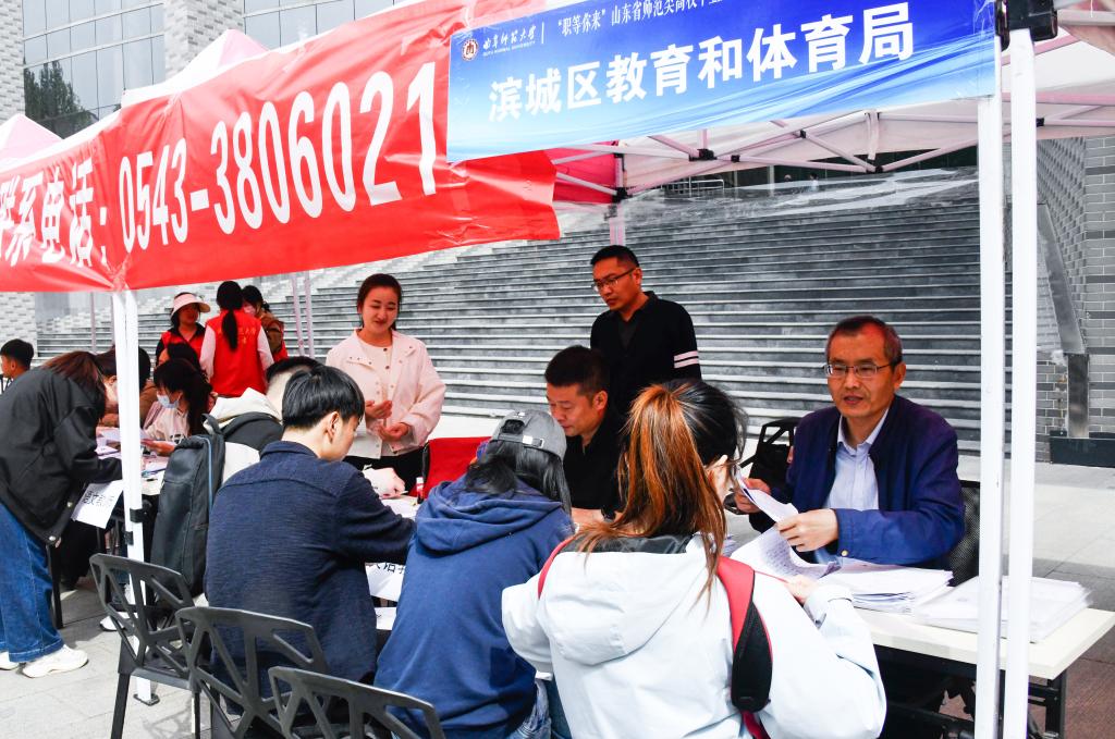 招聘会由山东省教育厅主办、D体育在线登录官网承办。招聘会现场设置了“二维码墙”为求职应聘提供便捷,应聘学生一键扫码即可了解相应招聘信息并投递简历;设置了直播带岗环节,毕业生辅导员代表走进直播间推介毕业生,用人单位代表直播带岗,取得了多方联动促就业的良好效果。针对学校师范办学特色,招聘活动还设置了教育行业招聘专场,其中滨州市提供教师岗位300余个,吸引2000多名师范毕业生报名应聘。学校为本次招聘会组建了300余名师生的志愿者团队,以细致周到的服务、科学规范的流程为本次招聘会提供了坚实保障;开通人才招聘服务绿色通道,确保了招聘会充分发挥好供需对接、人岗匹配的作用。