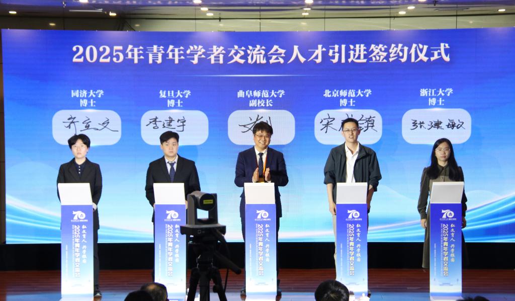 曲阜师大党委副书记、校长张洪海代表学校在曲阜校区与拟引进青年博士签约