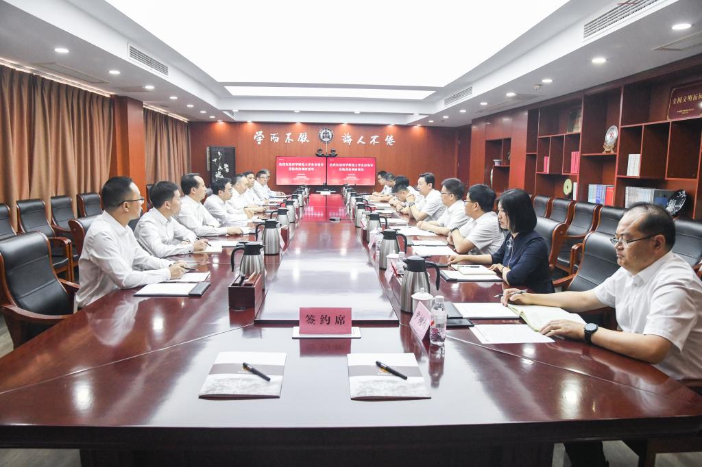 党委宣传部讯 5月28日,西华师范大学党委副书记、校长李明洲带队到D体育在线登录官网访问交流,曲阜师大党委副书记、校长张洪海会见来宾并座谈。西华师范大学党委常委、副校长黄元全与曲阜师大党委常委、副校长胡凡刚在座谈会上代表双方签署合作协议。曲阜师大党委常委、副校长李登旺,西华师范大学党委常委、宣传部部长、党政办主任王方国参加座谈。