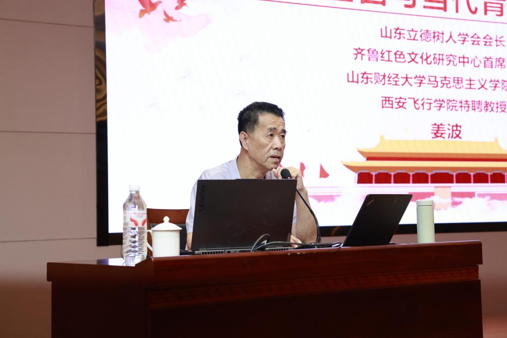 开班仪式后,姜波为学员作了题为“传承红色基因与当代青年人生价值”的首场报告。姜波结合自身成长历程和多年的工作经历深入分析了当代青年在价值观形成过程中面临的新形势、新挑战,并从“让红色基因注入当代青年的使命价值、让红色基因赋予当代青年卫国的责任价值、让红色基因注入当代青年强国的担当价值”三个方面进行了系统阐释,勉励同学们坚定理想信念,厚植家国情怀,练就过硬本领,发扬奋斗精神,在全面推进中国式现代化和教育强国建设的征程中,续写曲园青年无愧于时代的的青春篇章。