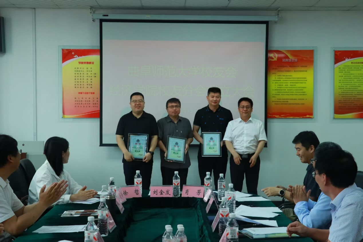 经济学院讯  6月15日,曲阜师大举行校友会经济学院分会成立大会。山东工商学院党委委员、副校长杜曙光,曲阜师大党委常委、副校长胡凡刚,党委常委、副校长刘刚出席会议。