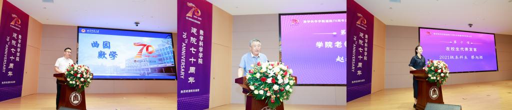 学院院长王培合教授作学科建设汇报;数学系原系主任、数学科学学院首任院长赵增勤教授深情回忆了数学学科的发展历程;在校生代表蔡旭颖表达了对学院的热爱与对未来的憧憬。