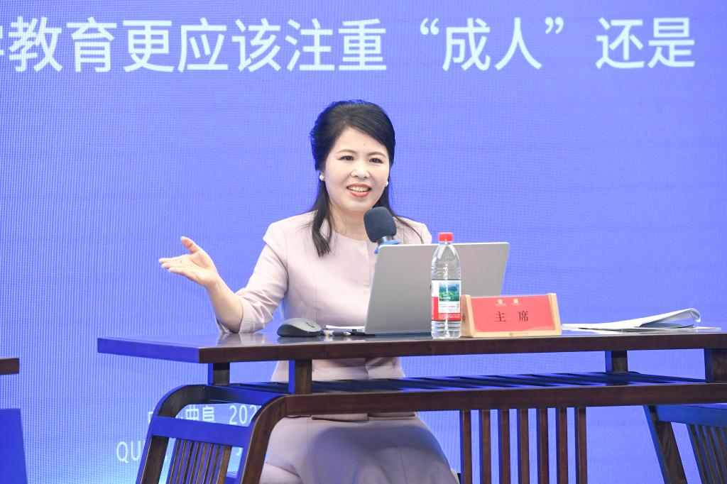 曲阜师大优秀传统文化教育中心副主任袁梅(右图)担任辩论会主席。