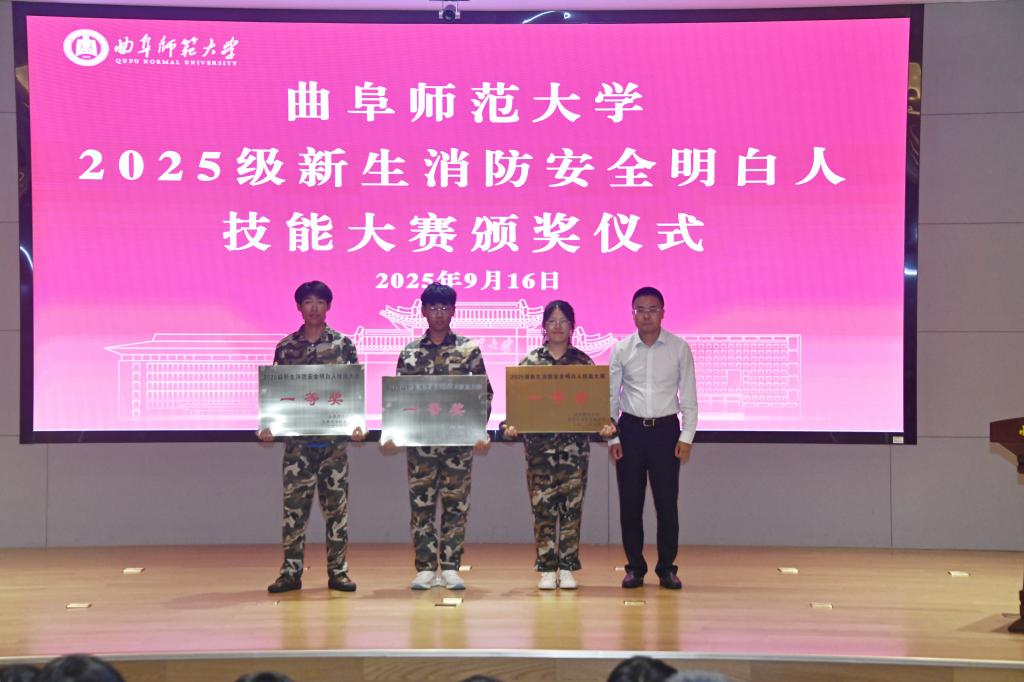在会前举办的消防安全明白人技能大赛中,经过多轮激烈角逐,最终产生一等奖3项、二等奖5项、三等奖7项,李登旺为一等奖获奖学院颁发奖牌。