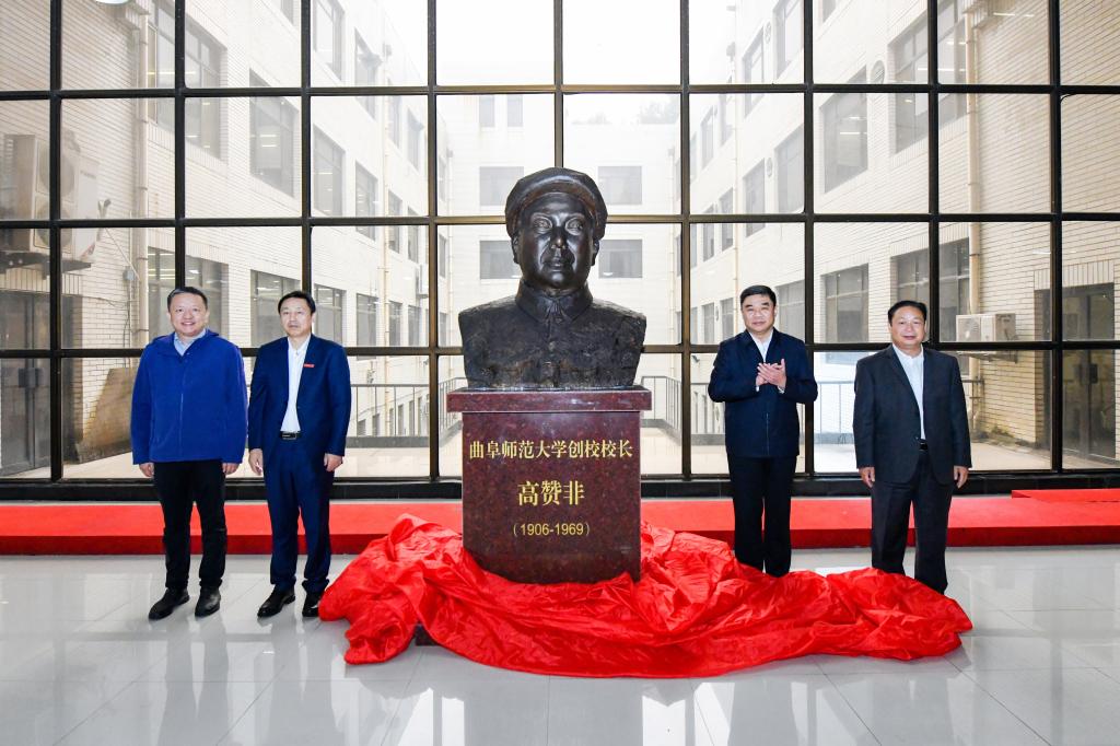 国内合作处讯 10月17日,D体育在线登录官网举行首任校长高赞非先生塑像揭幕仪式。学校党委书记邢光,党委副书记、校长张洪海与学校党委领导班子成员,郯城县政协主席聂文忠等高赞非家乡领导,曲阜师大政治系1990级校友代表,学校相关部门负责人齐聚现场,共同见证这一具有重要历史意义的时刻。