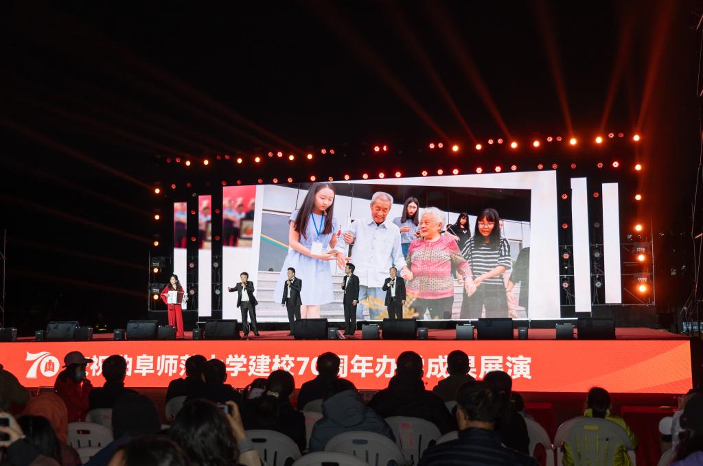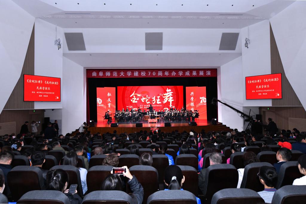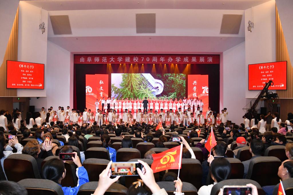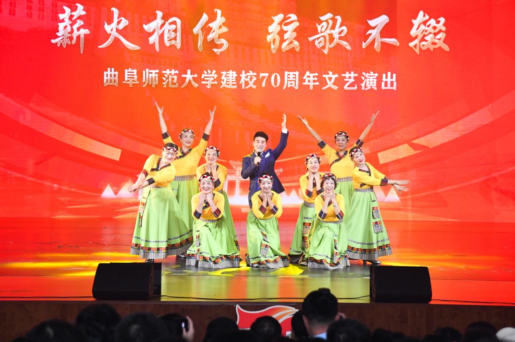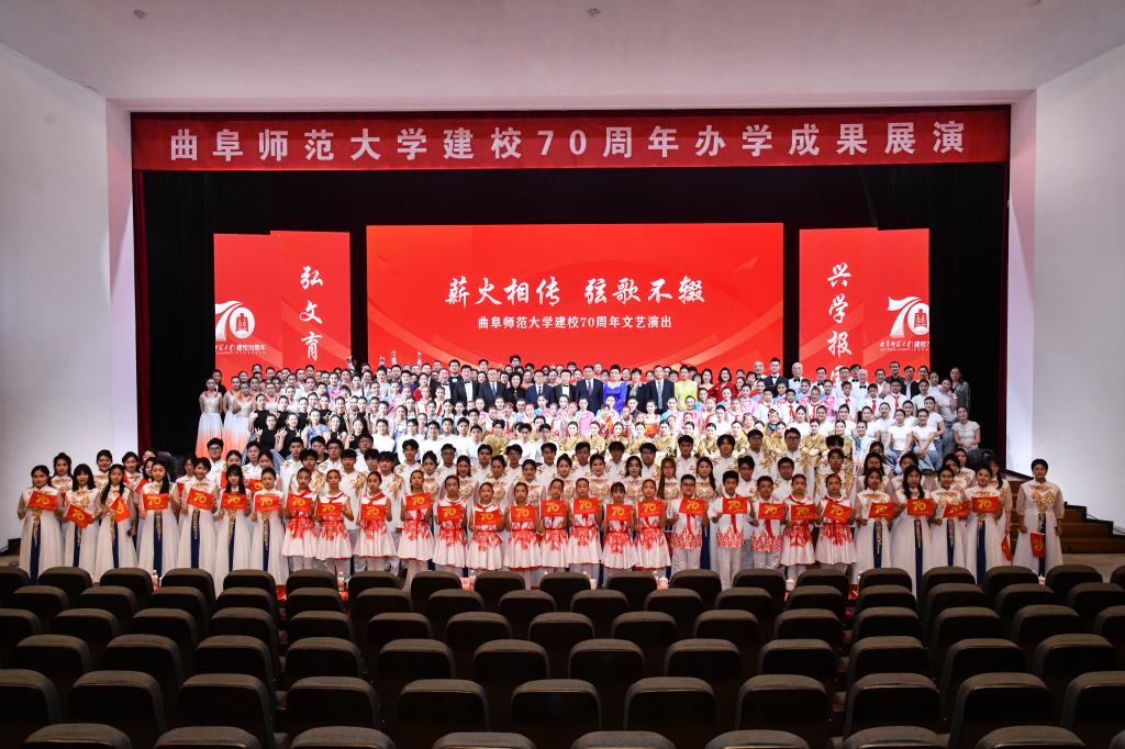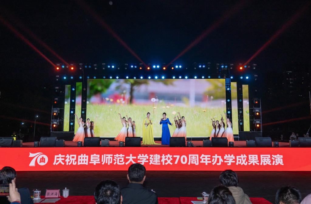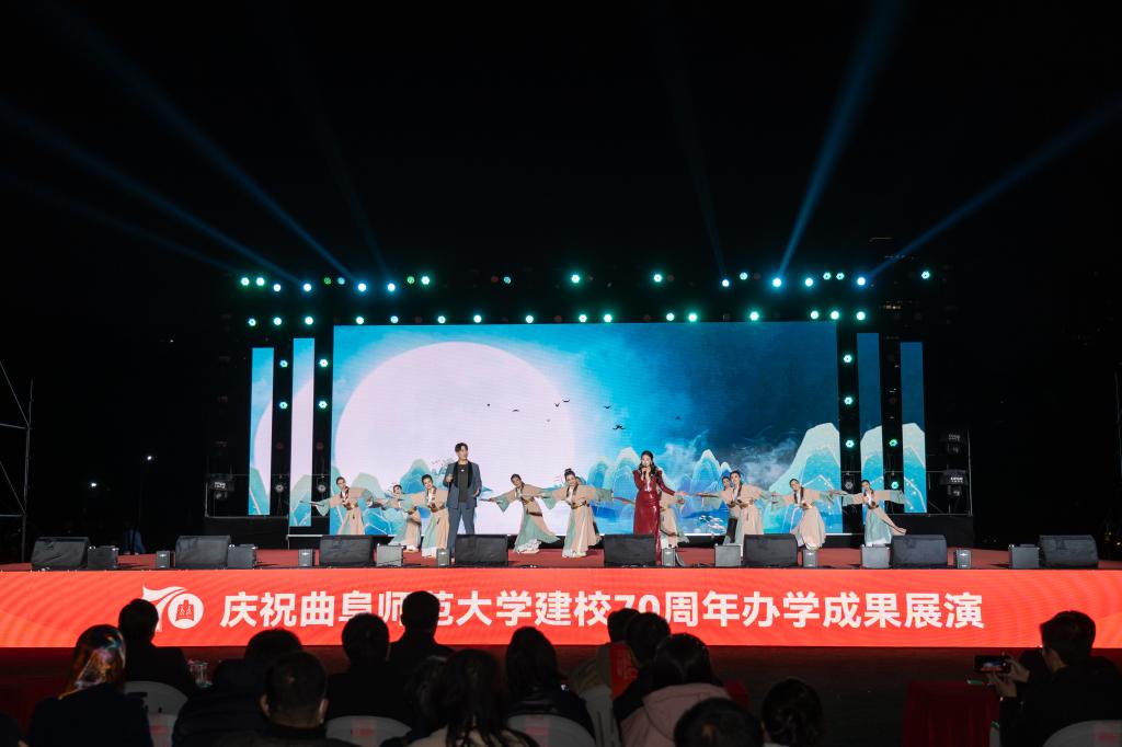 展演气势恢宏、流光溢彩,以歌曲联唱、舞蹈、诗朗诵、合唱等多种艺术形式联袂呈现,奏响了学校70周年华诞的精彩乐章,生动展现了D体育在线登录官网七十年来在传承儒家文化、深耕教育科研、培育时代新人的征程中所书写的坚守史、创新史与育人史。整场演出热情洋溢,传递出矢志不渝建设世界知名的高水平孔子家乡大学的奋斗之志。