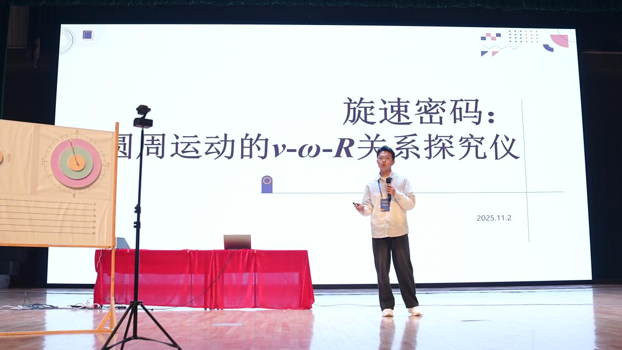 在复赛的作品展示与专家评审环节,曲园学子表现优异。其中,物理工程学院马本硕、班瑜婷、温梦涵团队的作品《旋速密码:圆周运动的v₀-R关系探究仪》,以及李佳恒、孔欣烜团队的作品《“功速传奇”研究仪》荣获特等奖;物理工程学院孙萌、王竟褀、武子茂团队的《基于ESP32的RGB光的合成演示教具》荣获一等奖;徐峥然、徐一鸣(物理工程学院)与吴雨欣(文学院)获二等奖;班瑜婷(物理工程学院)、周子萱、王钰(心理学院)、王心凌(地理与旅游学院)、王子奇(翻译学院)等获三等奖。特等奖获得者马本硕同学作为选手代表在闭幕式上进行了教具实操演示。