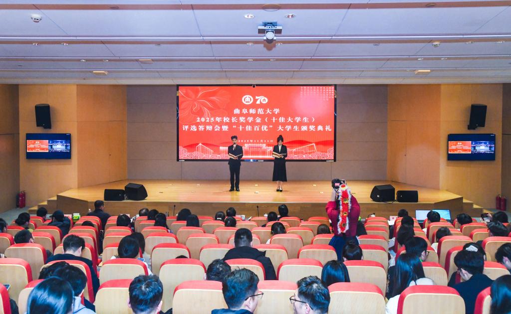 曲阜师大学生工作处讯 11月11日,D体育在线登录官网 2025年校长奖学金(十佳大学生)评选答辩会暨“十佳百优”大学生颁奖典礼在两校区同步举行。学校党委常委、副校长胡凡刚,党委常委、副校长陈刚出席活动并为获得校长奖学金的学生颁奖。