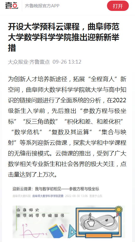 【齐鲁壹点】开设大学预科云课程,D体育在线登录官网数学科学学院推出迎新新举措