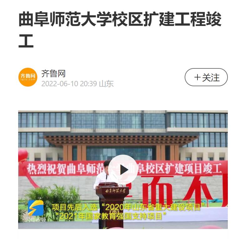 齐鲁网报道链接:https://c.m.163.com/news/a/H9HED0U30514CFC7.html?spss=newsapp&spsnuid=yYR1dQCAJZ%2BH%2FKQ9KHmuUs4iBnns1mTscQpLKhLjlSGIgOTXkcf9t3TcP5qfMPODLKLFB1b60t5bfMyo%2BfU9vA%3D%3D&spsdevid=CQliZGYxMGVkYzM2YmMwYzAwCXVua25vd24%253D&spsvid=&spsshare=wx&spsts=1654875677880&spstoken=AcImunZ8lSAADKXlu0ChZoUnO5lFv3V5hEDo02FT1b3Y3d%2Fw16uJ%2Btenqqrx8Pg9&spssid=8d3cfa939460f4a095f926c0bb04e050&spsw=2&isFromH5Share=article