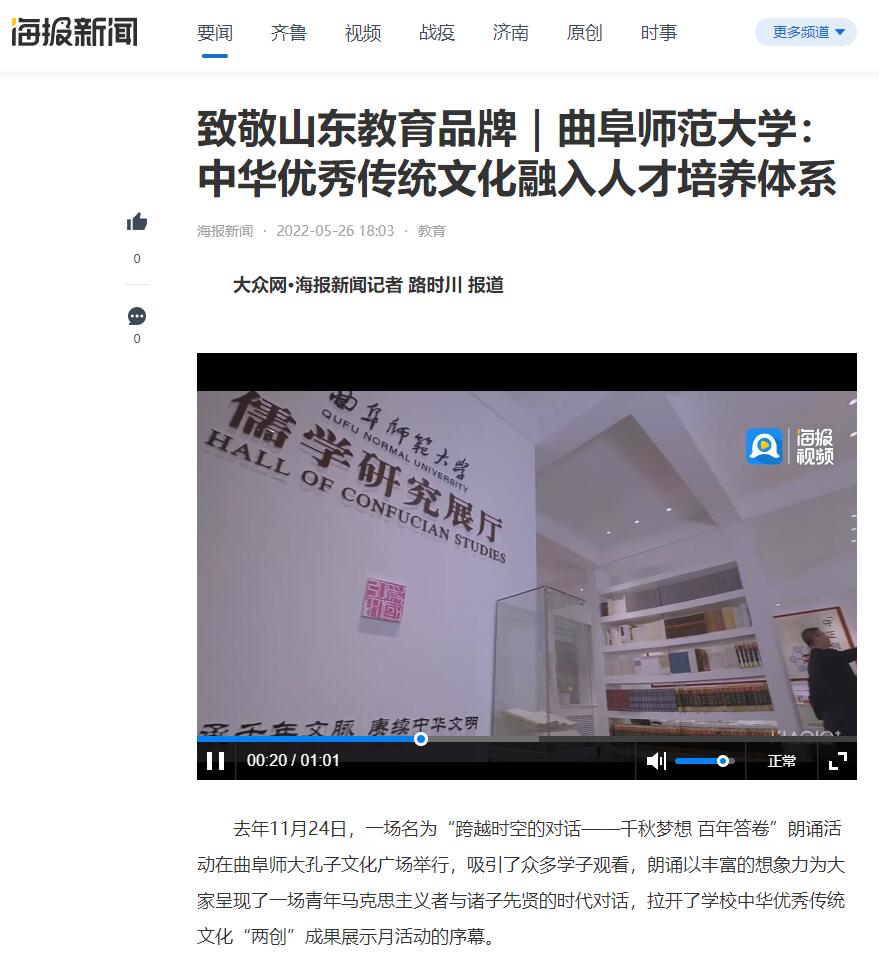 【海报新闻】致敬山东教育品牌|D体育在线登录官网:中华优秀传统文化融入人才培养体系