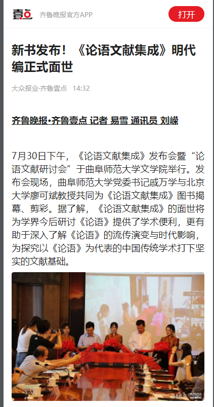 齐鲁壹点:新书发布!《论语文献集成》明代编正式面世