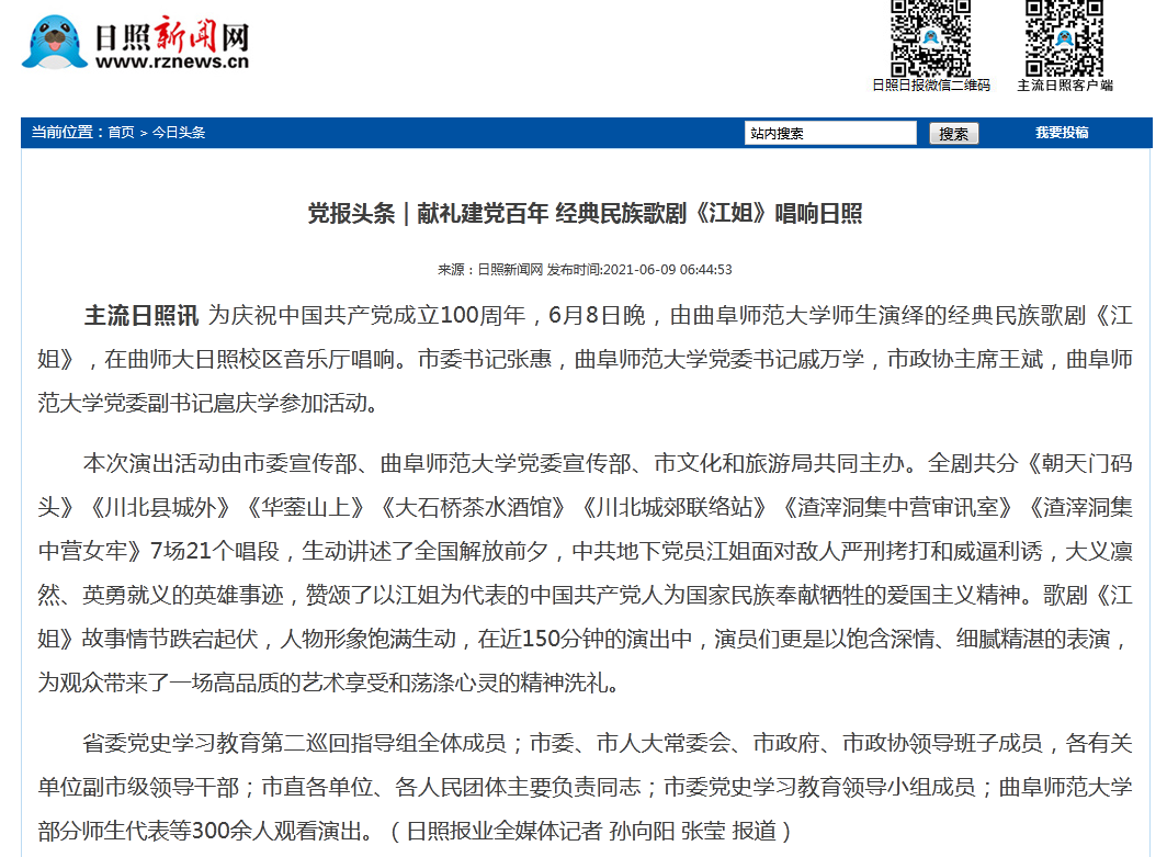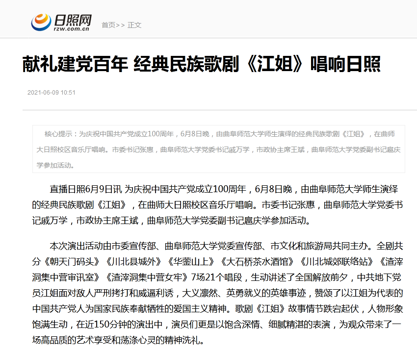 日照网:D体育在线登录官网师生演绎经典民族歌剧《江姐》献礼建党百年