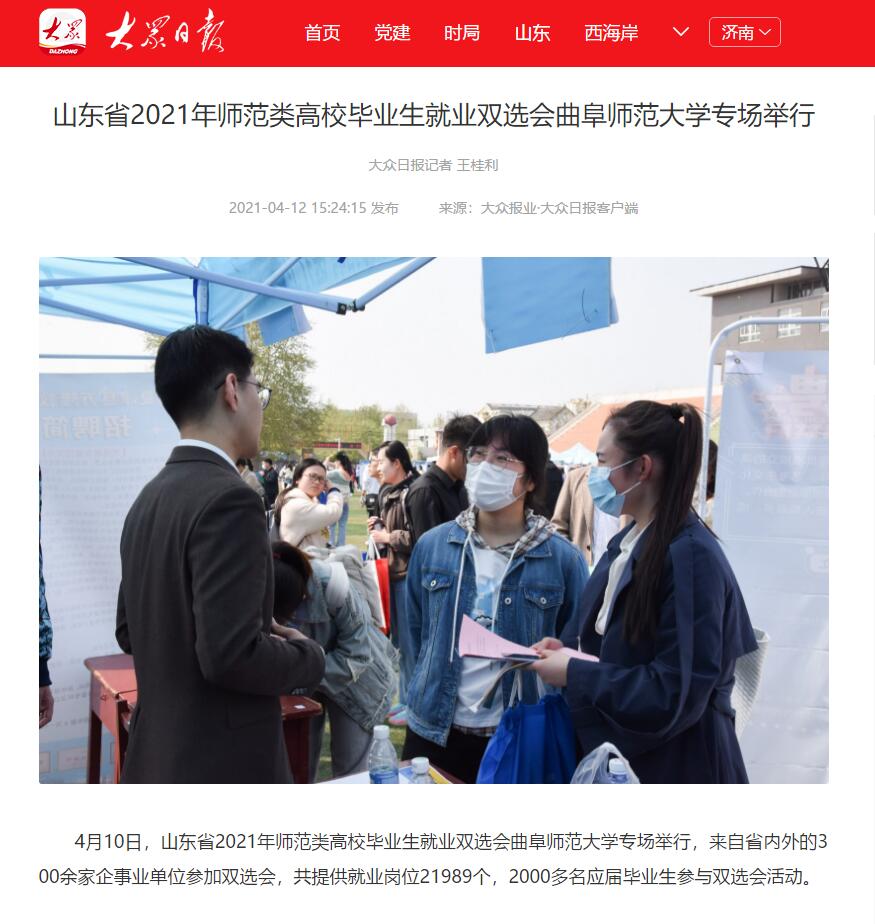大众日报:山东省2021年师范类高校毕业生就业双选会D体育在线登录官网专场举行