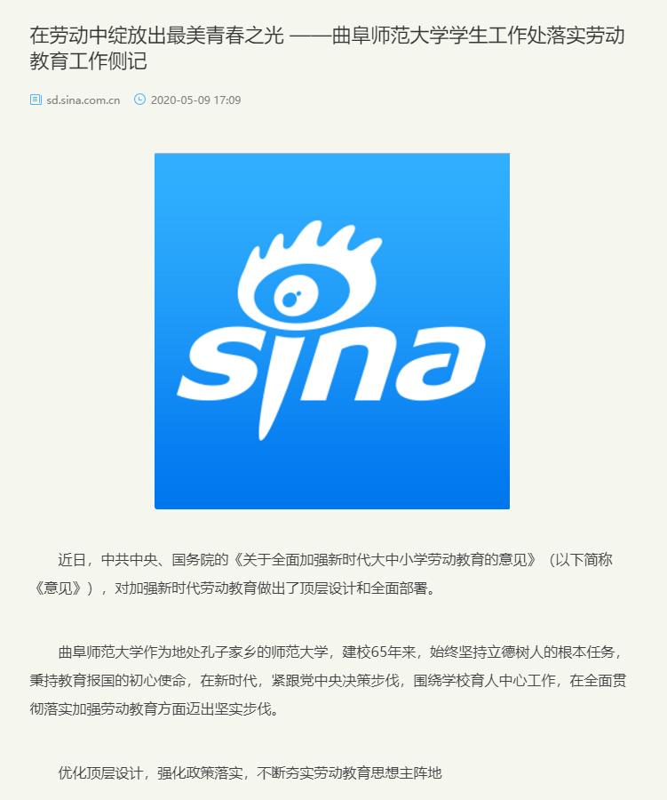 报道链接:http://sd.sina.com.cn/edu/2020-05-09/detail-iircuyvi2195338.shtml