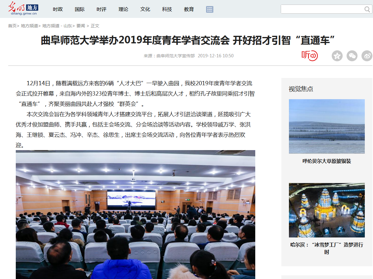报道链接:http://difang.gmw.cn/sd/2019-12/16/content_33405805.htm