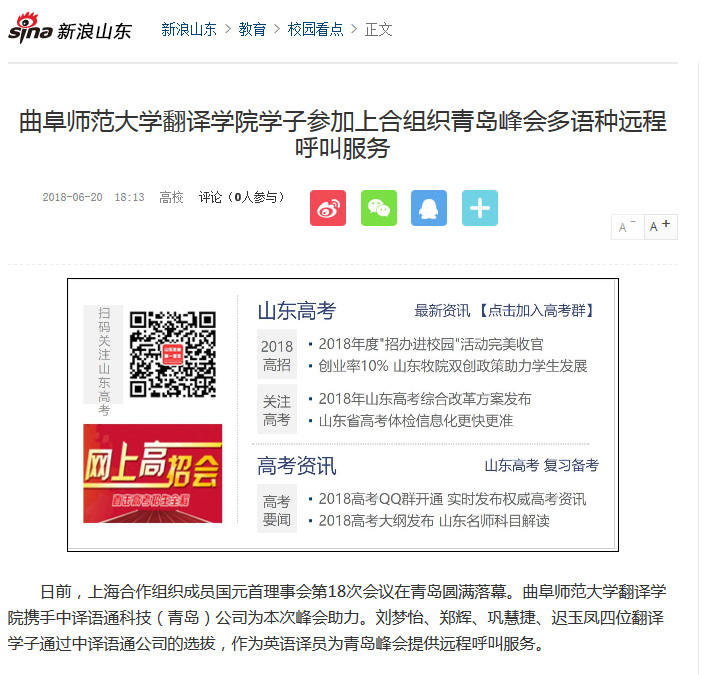 新浪网报道链接:http://sd.sina.com.cn/edu/xykd/2018-06-20/detail-ihefphqk3741858.shtml?qq-pf-to=pcqq.c2c