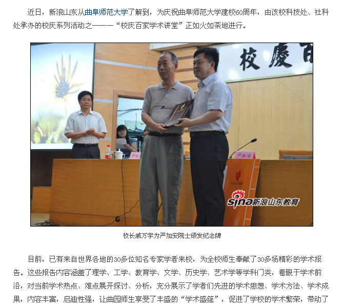 新浪网报道链接:D体育在线登录官网举行“校庆百家学术讲堂” 促进曲园学术繁荣