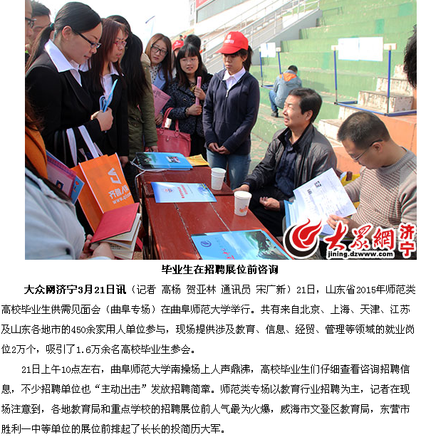 大众网:山东省师范类高校毕业生招聘会在曲师大举行