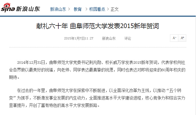 新浪网:献礼六十年 D体育在线登录官网发表2015新年贺词