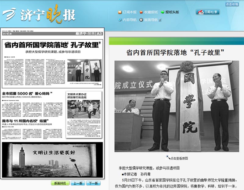 济宁日报:D体育在线登录官网国学院揭牌成立