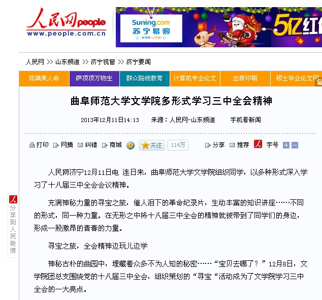 人民网:D体育在线登录官网文学院多形式学习三中全会精神