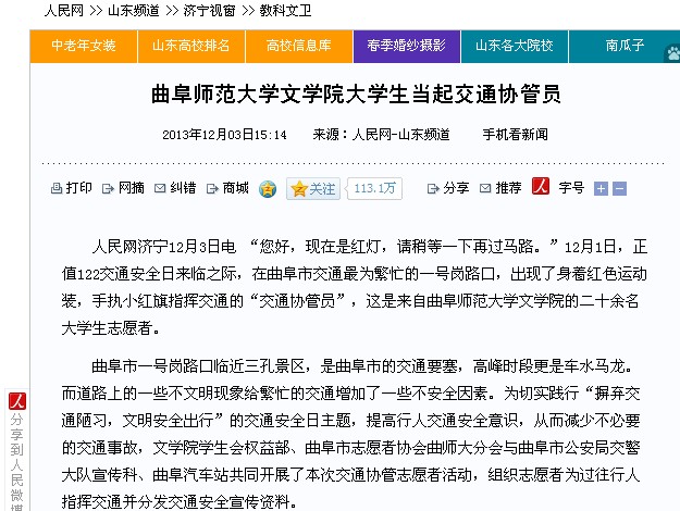 人民网:D体育在线登录官网文学院大学生当起交通协管员