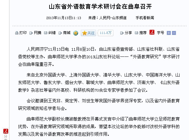 人民网:山东省外语教育学术研讨会在曲阜召开