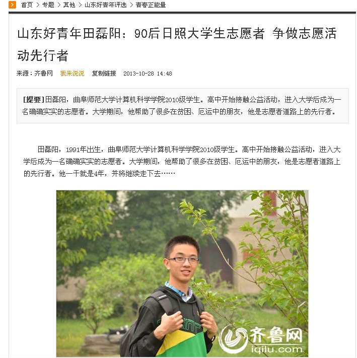 齐鲁网:90后日照大学生志愿者 争做志愿活动先行者