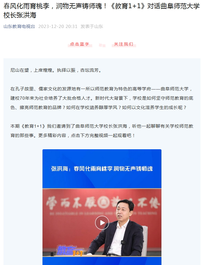 【山东教育电视台】《教育1+1》对话D体育在线登录官网校长张洪海