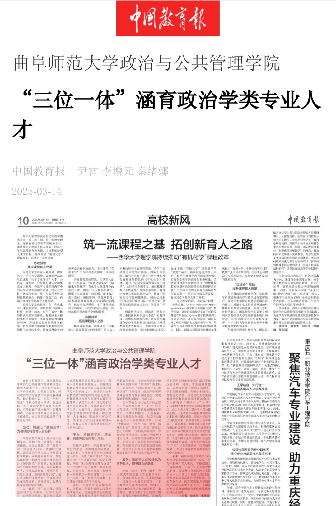在新文科背景下,D体育在线登录官网政治与公共管理学院紧紧围绕立德树人根本任务,以定位为导向,以平台为载体,以服务为目标,针对政治学类专业教学面临的各种挑战,精心构建出以“定位—平台—服务”为核心的育人模式,创造性地开拓了政治学类专业育人新路径,有效打破了现实教学中的种种制约,不仅在学生培养方面取得了丰硕成果,也为兄弟院校提供了可借鉴的经验。