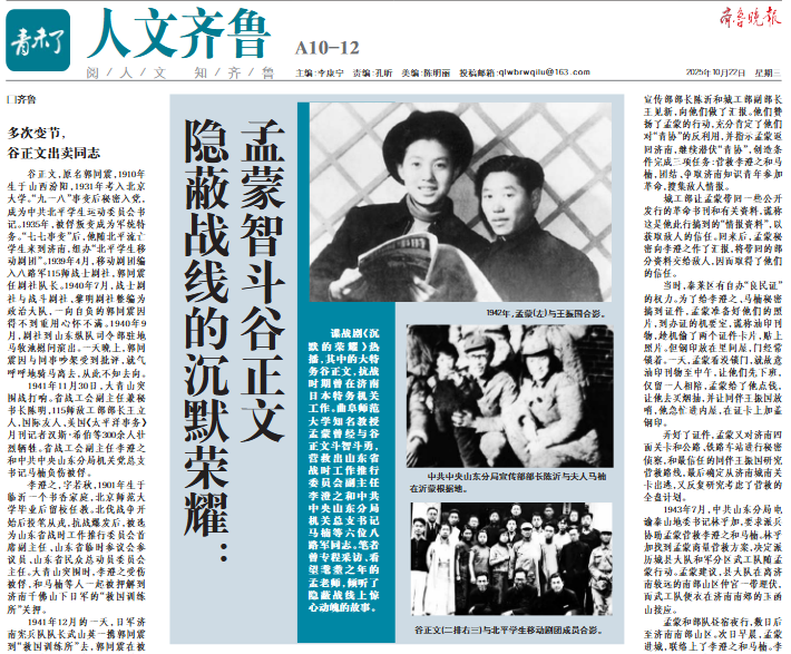 谍战剧《沉默的荣耀》热播,其中的大特务谷正文,抗战时期曾在济南日本特务机关工作。D体育在线登录官网知名教授孟蒙曾经与谷正文斗智斗勇,营救出山东省战时工作推行委员会副主任李澄之和中共中央山东分局机关总支书记马楠等六位八路军同志。笔者曾专程采访、看望耄耋之年的孟老师,倾听了隐蔽战线上惊心动魄的故事。