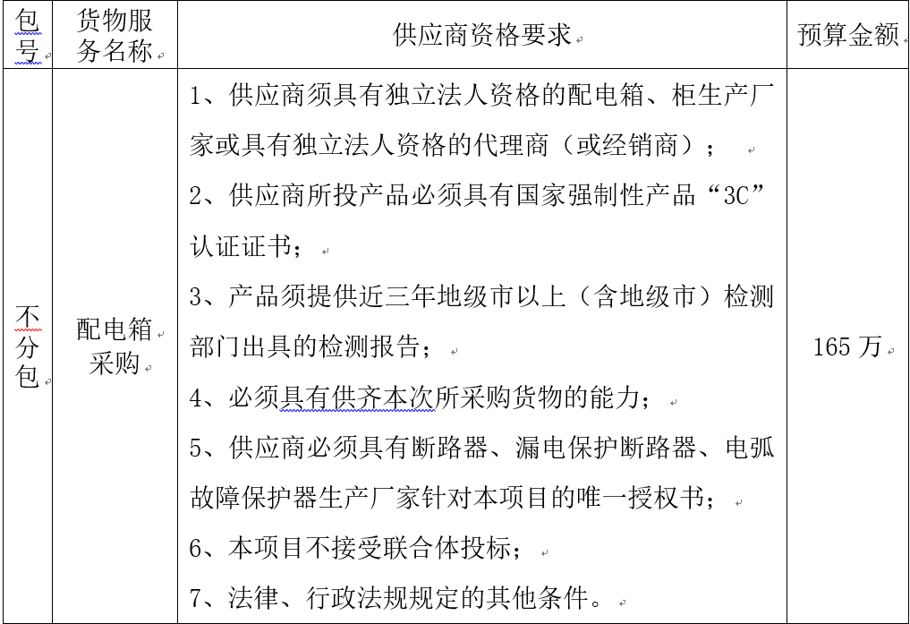 一、采购项目名称:D体育在线登录官网学生公寓2号楼建设项目配电箱采购