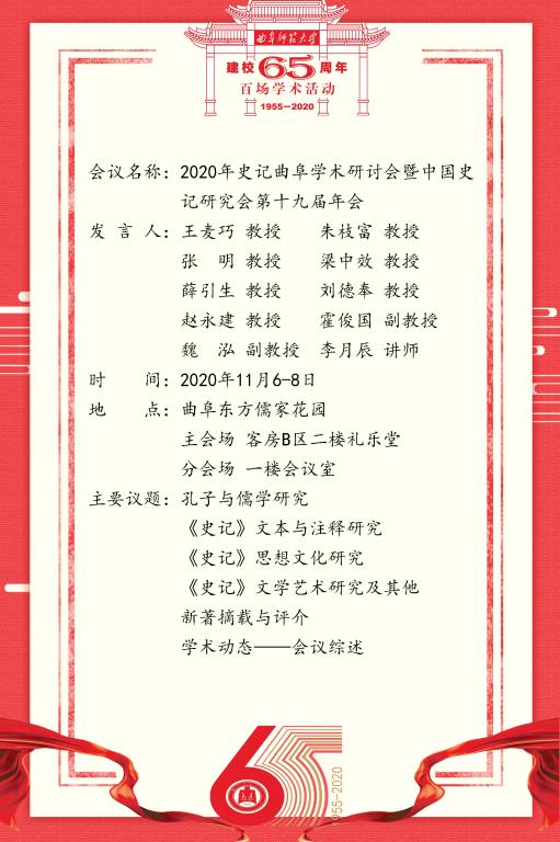 建校65周年百场学术活动-2020年史记曲阜学术研讨会暨中国史记研究会第十九届年会