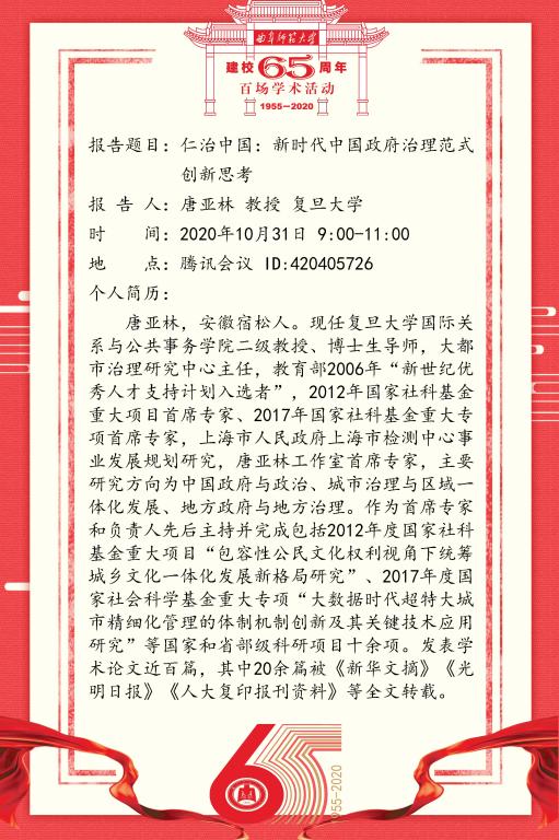 建校65周年百场学术活动-复旦大学唐亚林教授
