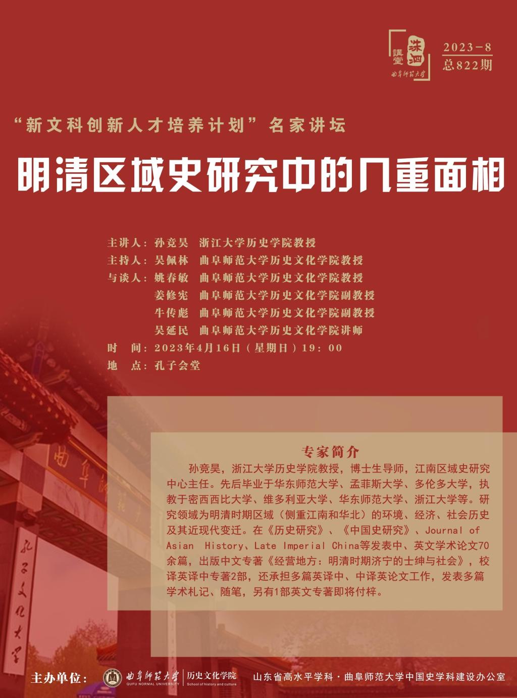 洙泗讲堂预告|孙竞昊:明清区域史研究中的几重面向