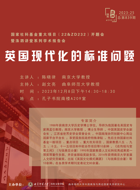 洙泗讲堂预告|陈晓律:英国现代化的标准问题