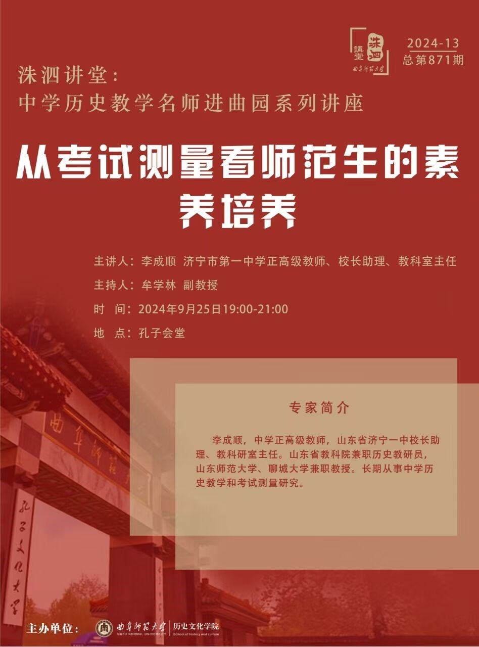 洙泗讲堂预告|李成顺:从考试测量看师范生的素养培养