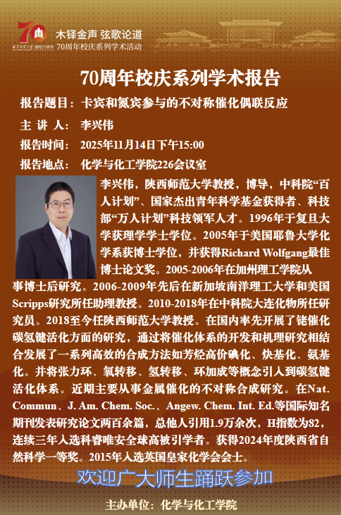 一流学科和交叉研究篇(之五十)李兴伟: 卡宾和氮宾参与的不对称催化偶联反应